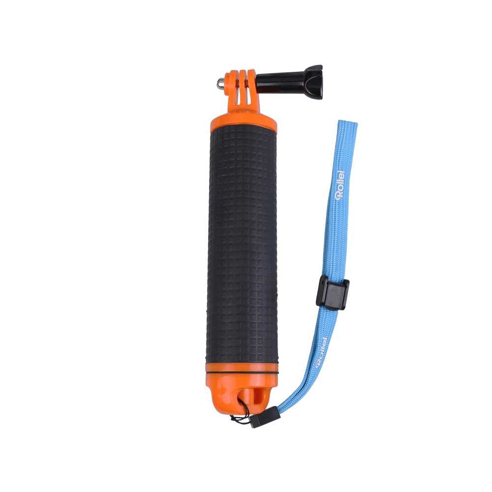 In addition to the perspectives that are fixed close to the body, you can of course attach your Rollei or GoPro* action camera to any smooth surface, crossbars, handlebars, frames, boards and many other sports equipment and align it exactly to the viewing angle that seems appropriate to you. 3M adhesive stickers for straight and curved mounts allow you to quickly switch between different attachment points. A buoyancy body prevents your valuable action camera from disappearing into unreachable water depths, the swimming handle with wrist strap is very popular with scuba divers and snorkelers.