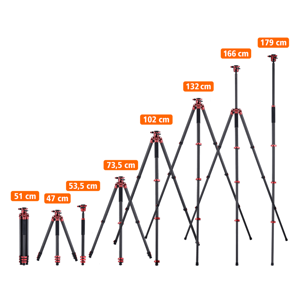 🔸 Ultra-light carbon tripod: only 1.34 kg for comfortable transport and stable handling