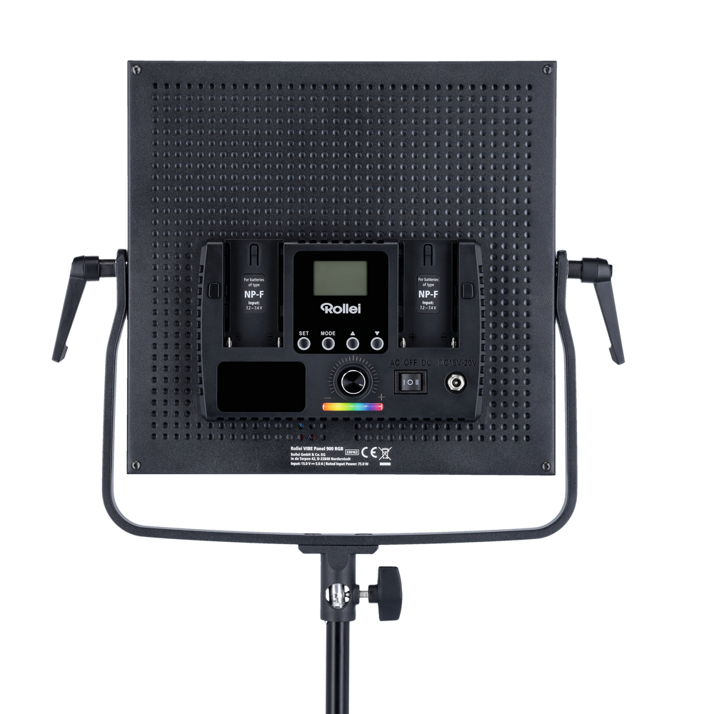 Whether in the studio or on the go, that Vibe Panel 900 RGB Ensure that you never stand without electricity. Use that supplied power cable For permanent operations or the Separately available NP-F batteries for mobile recording situations.