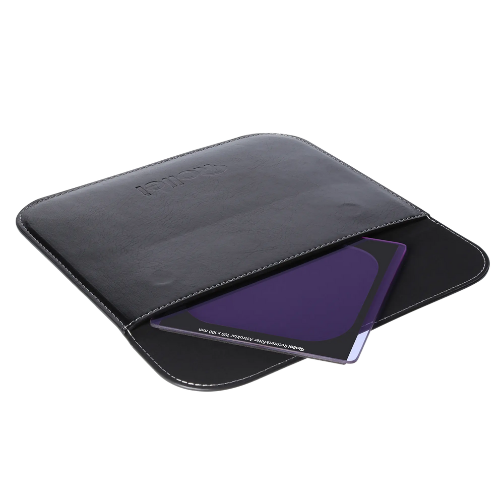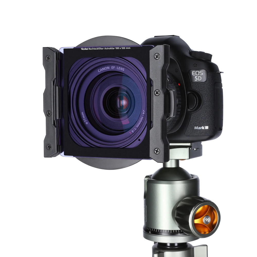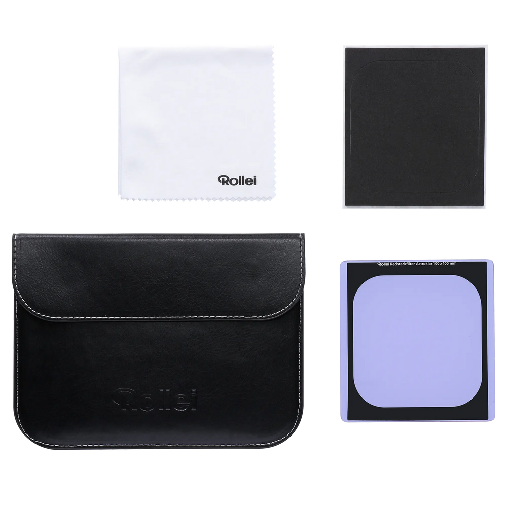 So that you can use your Rollei Astroklar filter even in demanding projects and under adverse weather conditions, the high-quality optical glasses have been coated on both sides with a special nano-coating. This additional protective layer not only reliably prevents reflections caused by uncontrollable light sources, which are particularly annoying when taking night photos, but also has a strong water, oil and dirt repellent effect. Cleaning your Astroklar rectangular filter becomes child's play, if necessary. The light transmission when using the Astroklar filter is reduced by 2/3 stop or f-stop. In general, we recommend not only when combining with other filters such as e Gray filters, Polarizing filters and Gray gradient filters in the filter holder, the use of one tripod and/or one remote shutter release.