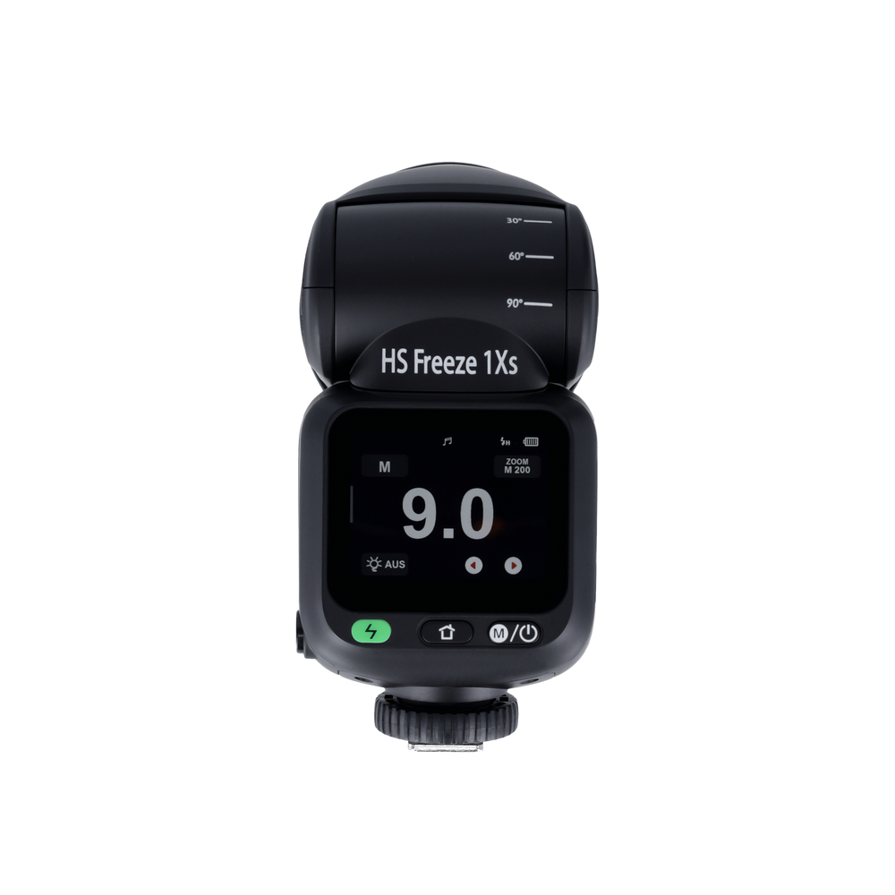 Mit echten 100 Ws Blitzleistung, einem Leitzahlbereich bis 60 und manuell sowie automatisch einstellbarem Zoombereich von 28–105 mm ist der HS Freeze 1X ein echtes Kraftpaket im kompakten Format.